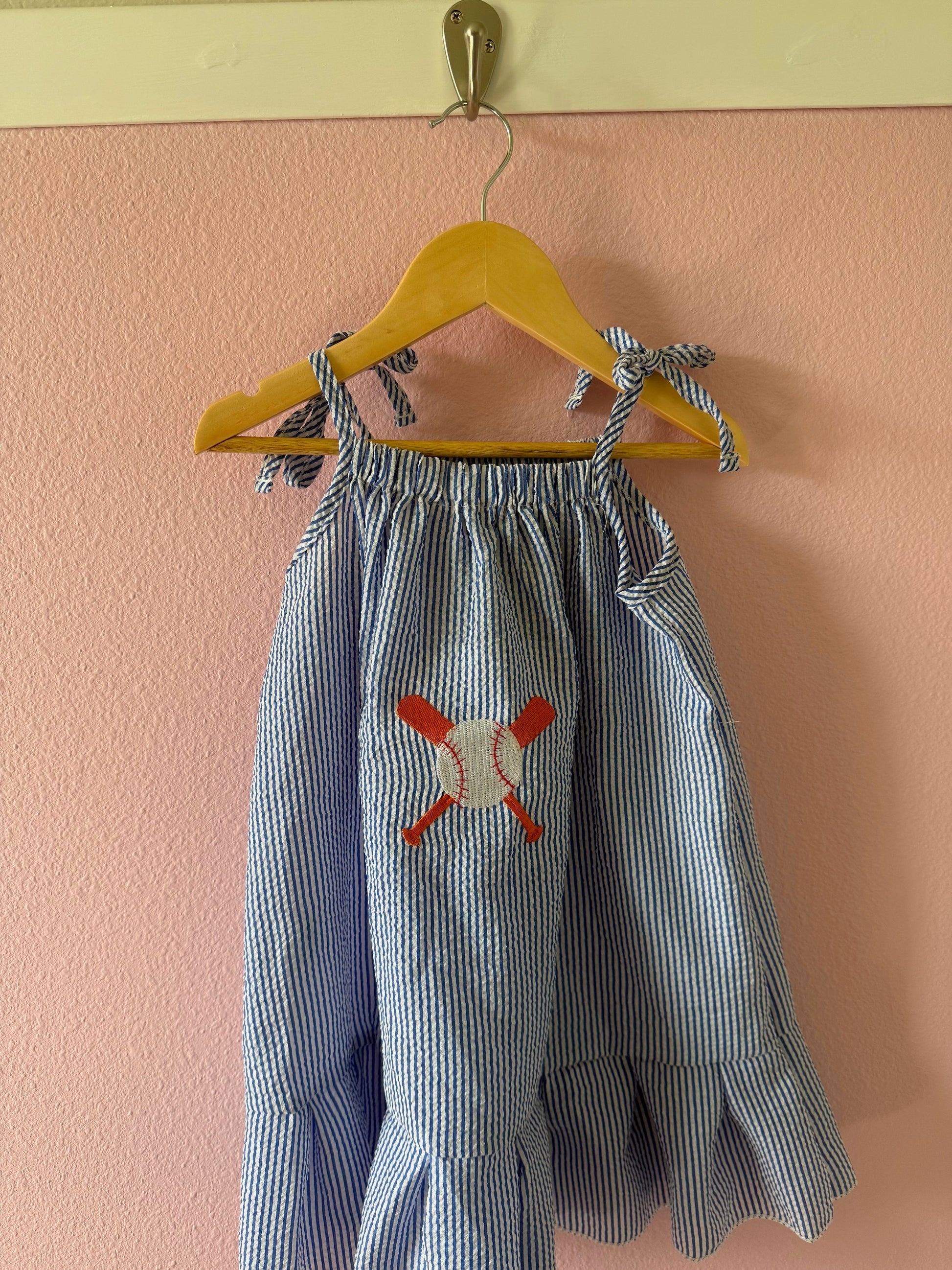 Blue Baseball Embroidered Dress
