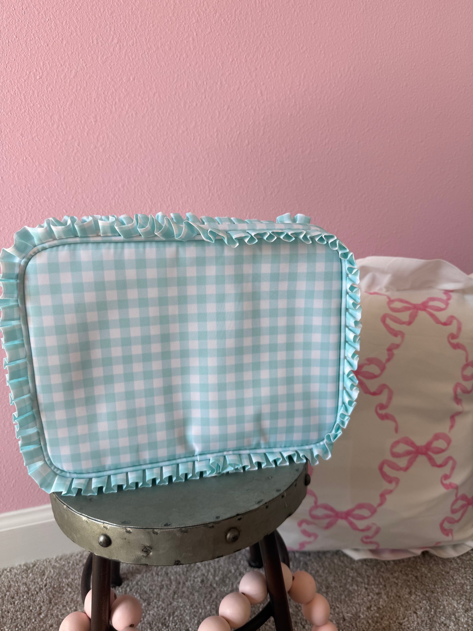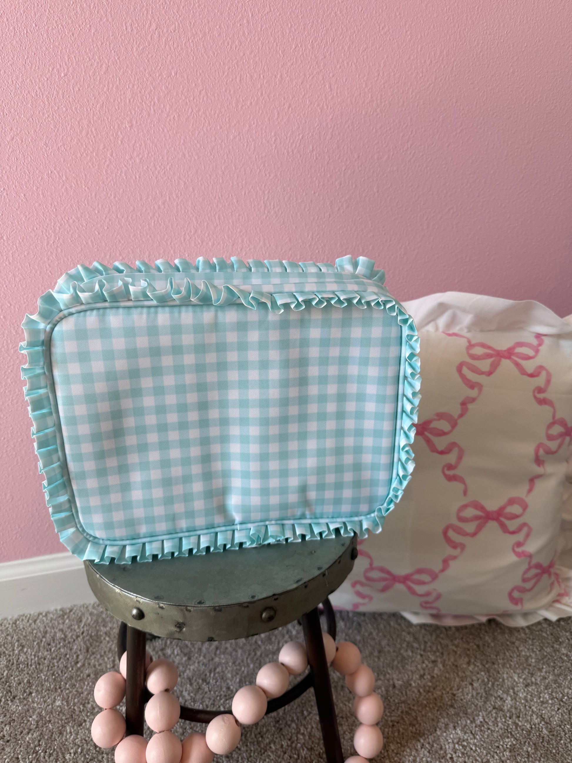 Large Blue Gingham with Ruffles Cosmetic Bag