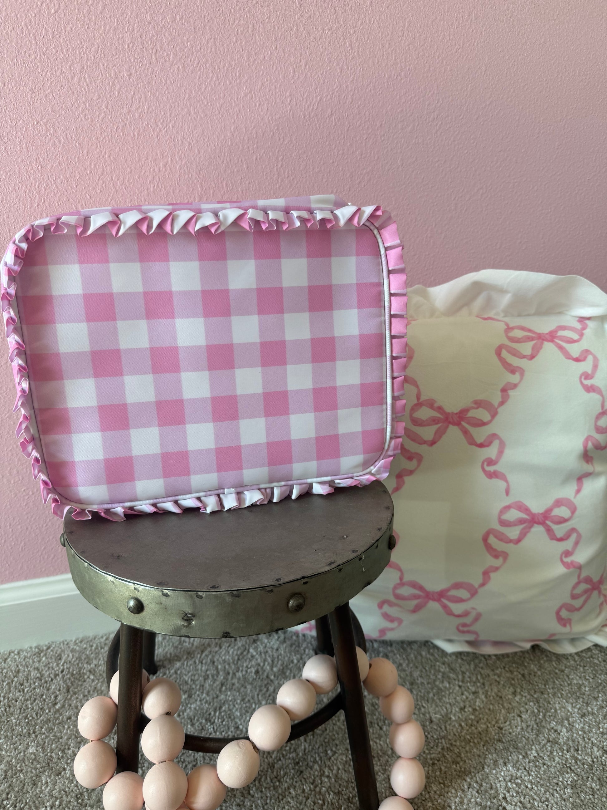 Large Pink Gingham with Ruffle Cosmetic Bag