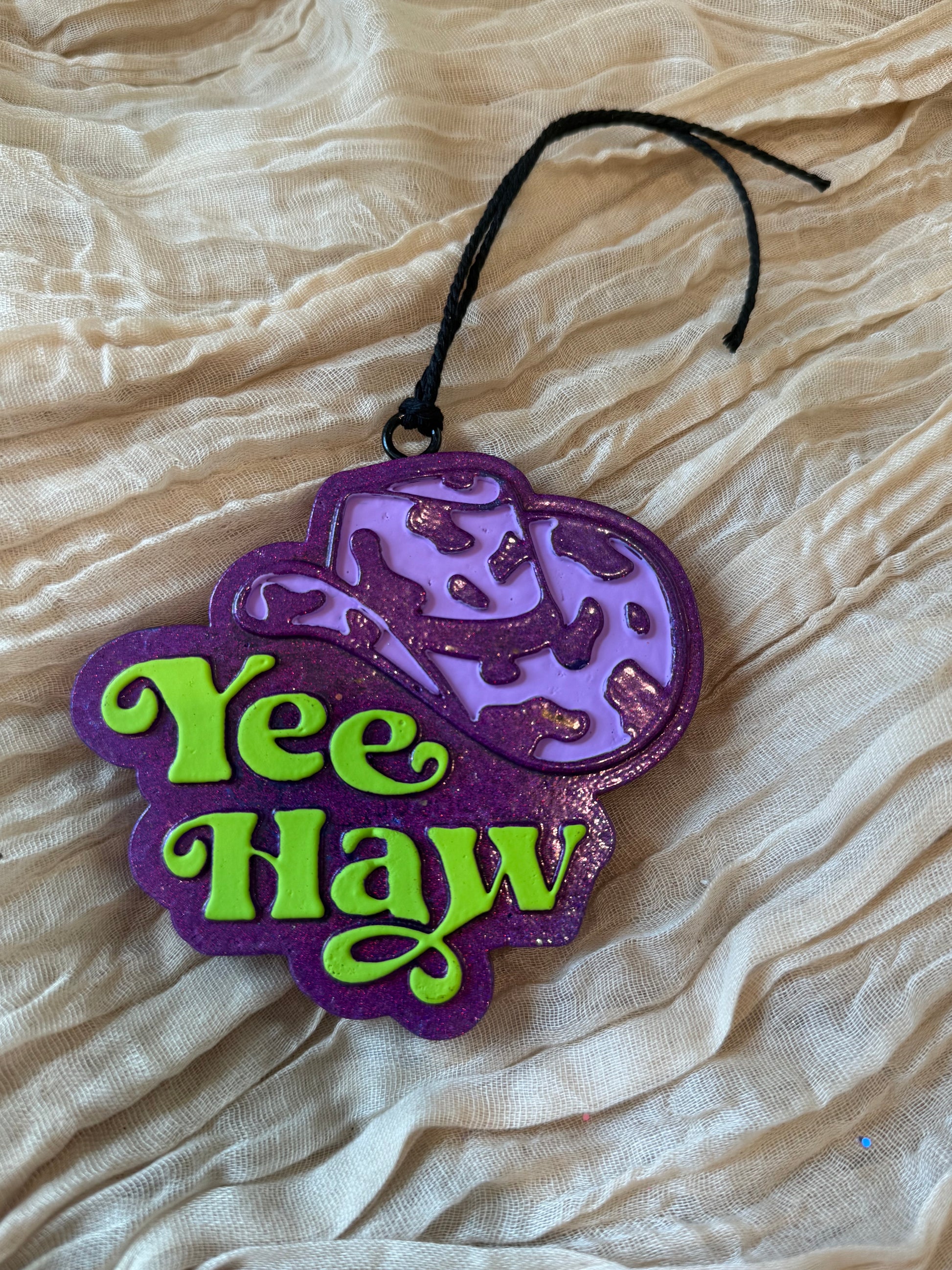 Purple Yeehaw & Cowboy Hat Car Freshie